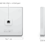 Wall-mounted WiFi 6E AP with 10 spatial streams, 6 GHz support, and a built-in 4-port switch. Designed for high-density office networks.
