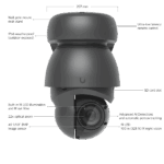 Industrial-grade 4K PoE++ PTZ camera with enhanced AI capabilities, 22x optical zoom, and long-range adaptive IR LED night vision.