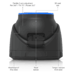 All-weather, vandal-proof 4K PoE+ turret camera with enhanced AI capabilities and IR and visible LEDs for night vision.