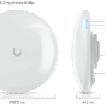5 GHz wireless bridge with PoE output that connects at 5+ km distances or seamlessly uplinks to UniFi WiFi.