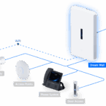 Wall-mounted 10G Cloud Gateway with integrated WiFi 6, high-power PoE switching, and full UniFi application support.