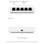 A compact, 5-port, Layer 2 switch that can be powered with PoE or a 5V USB-C adapter.
