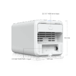 UniFi Network Attached Storage with (2) 3.5" HDD bays, 2.5 GbE networking, USB-C connectivity, and an included PoE++ adapter, all in a compact footprint.